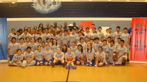 Players from the NBA’s D-League Bakersfield Jam and the NBA’s D-League front office put on a basketball clinic for the girls and boys student-athletes. The clinic not only focused on basketball skills but on students’ physical and mental fitness as well. Students participated in six different stations including jump rope, ladder, knock-out, ball handling, bean bag race, and ball crunches. Savannah Sharpe, an 8th grade basketball player, asked if “they could show her how to dunk.” Mr. Lopez, an ex-NBA player from the San Antonio Spurs, gave the reins to former NCAA 2010 Dunk Champ Marqus Blakely. After Marqus slammed the ball down it was now Savannah’s turn. She did her best and was cheered on by the players. At the end of the clinic, students were able to ask the players some questions about what it takes to be a professional basketball player. The players emphasized the importance of education and explained how basketball is different than other sports in that they must attend college before being drafted into the NBA. Students were thrilled to have the opportunity to learn from these talented players. “I can’t believe they took time out of their schedules to come help us,” 7th grader Jonathan Garza said. (Courtesy Photo)