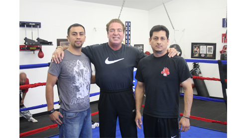 Eri Hernandez, Larry Polsky, Esq. and Richard Rosales are shown at Polsky’s boxing gym. (Staff photo by Scarlet O’Rourke)