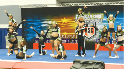 ‘Cheer-tastic’. Shown is a scene from the American Spirit Champions, South Texas Xtreme Senior Co-ed Level 4, held on South Padre Island this weekend. (Photo by Lauren Laughlin)