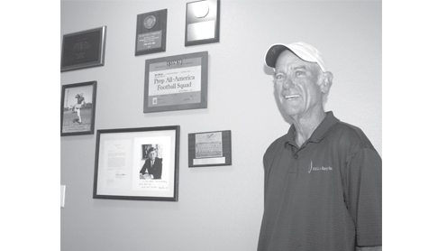 Memories. Jim Helms of the 1961 San Benito Greyhounds is shown inside his South Padre Island home displaying memorabilia acquired during that dream season. (Staff photo by Ray Quiroga)