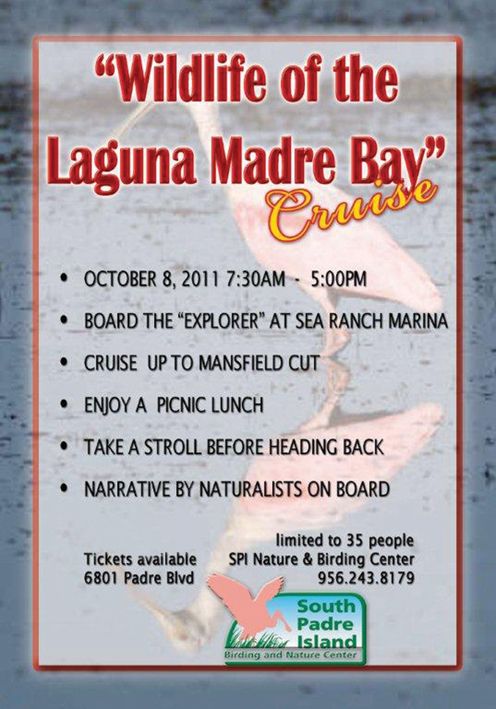 The South Padre Island Birding & Nature Center is offering a cruise up the Laguna Madre Bay aboard the “Explorer” on Saturday, Oct. 8, to view the wildlife that calls the bay their home.
