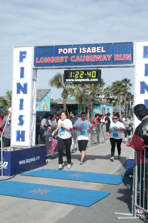 The 28th Annual Longest Causeway Run & Fitness Walk was held Saturday, Jan. 14 with perfect weather conditions and a record registration of over 1,800 runners and a total of 4,411 participants who took part in this 10k tradition. Runners and walkers left Yturria and Houston St. at 10 a.m. and 10:15 a.m. and followed a course over the 2.6 mile Queen Isabella Causeway, over the Laguna Madre Bay, on to South Padre Island. The top three winners in the male category where Benjamin Kiplimo (30:58), Sammy Kiplagat (31:32), and Stephen Tanui (32:45). The top three winners in the female category where Lucy Kurgat (35:46), Leah Kigen (37:18) and Liza Hunter (37:38). For full breakdowns on the winners, log on the Port Isabel Chamber of Commerce website: www.portisabel.org/chamber/wp-content/uploads/2012/01/01_14_12.htm. (Staff photos by Ray Quiroga)