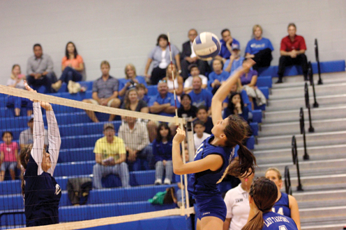 Some of the overpowering was done by outside hitters Helena Loya and Kate Bowles. Loya led the team with a match-high 19 kills and Bowles had seven with nine digs.
