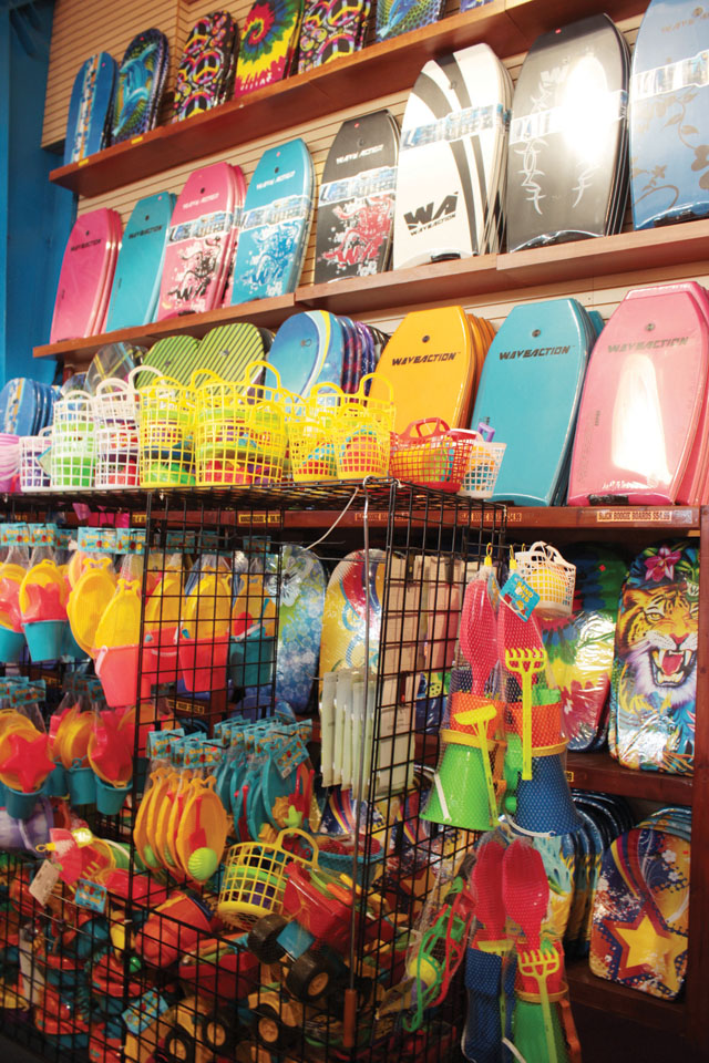 Ocean Motion carries beach recreational items such as surf boards, skim boards and body boards as well as other sand toys for a day on the beach.