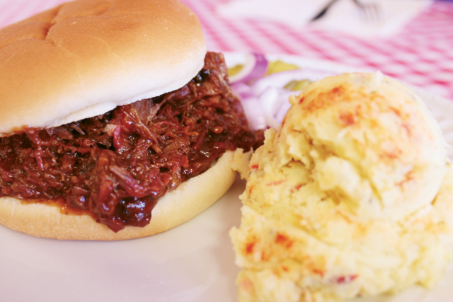 Currently, Lady and the Pit serves choice meats served on a platter with two sides or in sandwich form served with chips and a pickle. Meats to choose from are ribs, sliced brisket, hot links, pulled pork, chopped beef, sausage chicken or bolo.