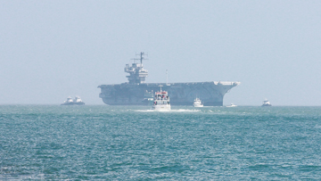 Around 1:30 p.m., Tuesday, with thousands of onlookers lining the beach at Isla Blanca Park, the USNS Forrestal veered around the bend and began navigating her way through the Brownsville Ship Channel.