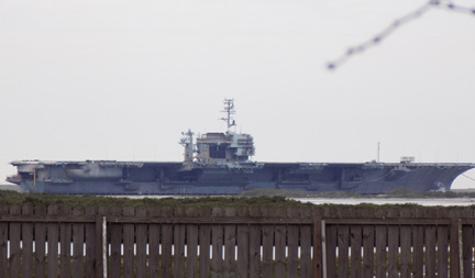 The Rio Grande Valley welcomed the arrival of the USS Constellation (CV-64) Friday morning. The immense aircraft carrier is shown being towed, passing Port Isabel on its way to the Port of Brownsville where it will be dismantled for its metal upon arrival. Hundreds of Laguna Madre residents, including veterans who served aboard, came out to see the massive ship as it treaded the ocean for the last time.