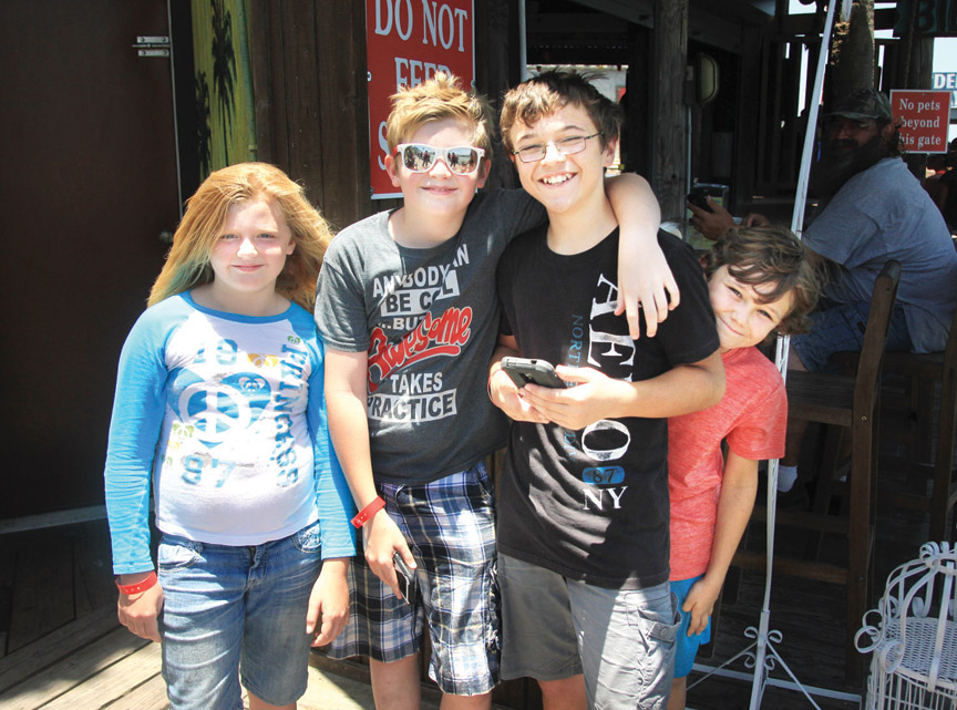 Squinting in the bright afternoon sunshine, a woman holds a cell phone up, as if to take a photo of the bay from the vantage point at Pirate’s Landing. But closer inspection reveals the woman swiping at the screen instead of taking snapshots.