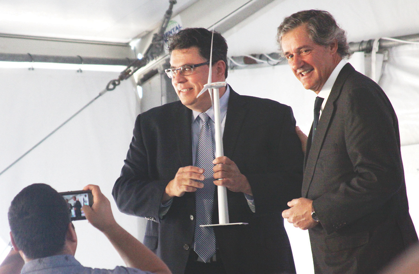 State and local dignitaries gathered north of Laguna Vista Wednesday to officially welcome the San Roman Wind Farm to Cameron County.