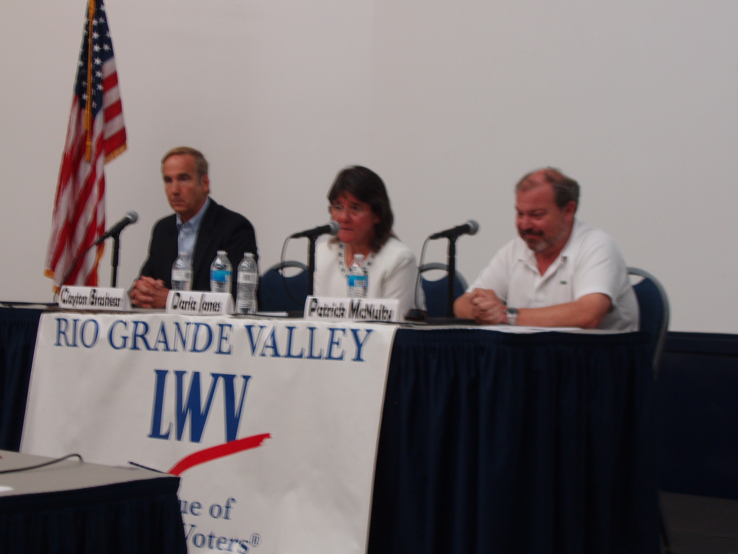 A large crowd was on hand to witness the Rio Grande Valley League of Women Voters Mayoral Candidate Forum held on Thursday, March 28 at the SPI Convention Centre. All three candidates in the upcoming SPI election for Mayor, CLayton Brashear, Darla Jones, and Patrick McNulty participated in the evnt. Representatives of the League of Women Voters served as moderators, asking questions that were answered by each of the candidates. The questions included some that were generated by the moderators and others that were submitted by citizens.
