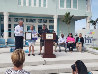 The Island Metro MultiModal Grand Opening was on Friday, July 12, and it was a grand opening indeed. With a ceremony that included a full program – speakers (local officials and funding partners), Color Guard march, singer Leslie Blasing, dedication, ribbon cutting, refreshments, and a tour of the two-story facility, the event brought in over 150 people.