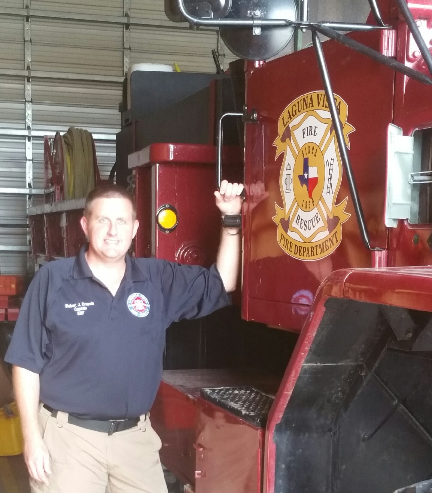 Drapela’s wife, Angelita, is a volunteer firefighter in Laguna Vista, and the couple’s three kids love to come and help their dad wash the fire trucks and help out around the fire station. “That’s our family time, they enjoy it,” said Drapela. “It’s our way to get out of the house. I don’t go out to the bars at night, I’m not a big sports guy, this is what I do.”