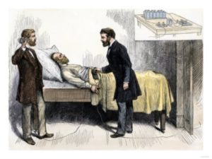 The x ray machine would not be invented for another 15 years so the doctors relied on manual probes with special instruments to determine the exact location of the bullet. They quickly realized they had no idea of where the bullet lie and continued probes to locate it increased the risk of infection.
