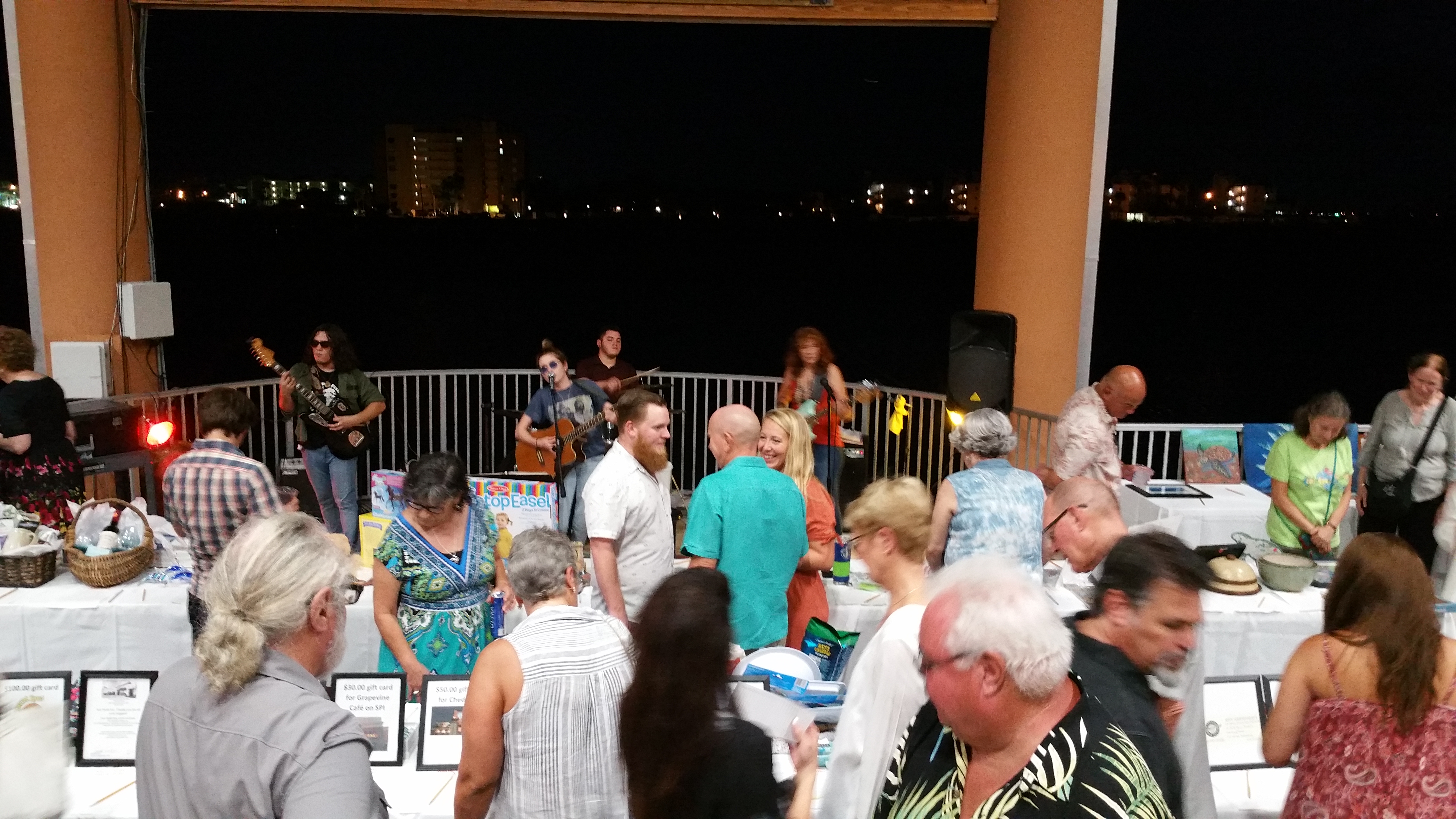 Guests of the “Tastes and Toddies with the Turtles” at Sea Turtle, Inc. view auction items as Jewel Marie and the Blitz plays in the background. Photo by Pamela Cody.