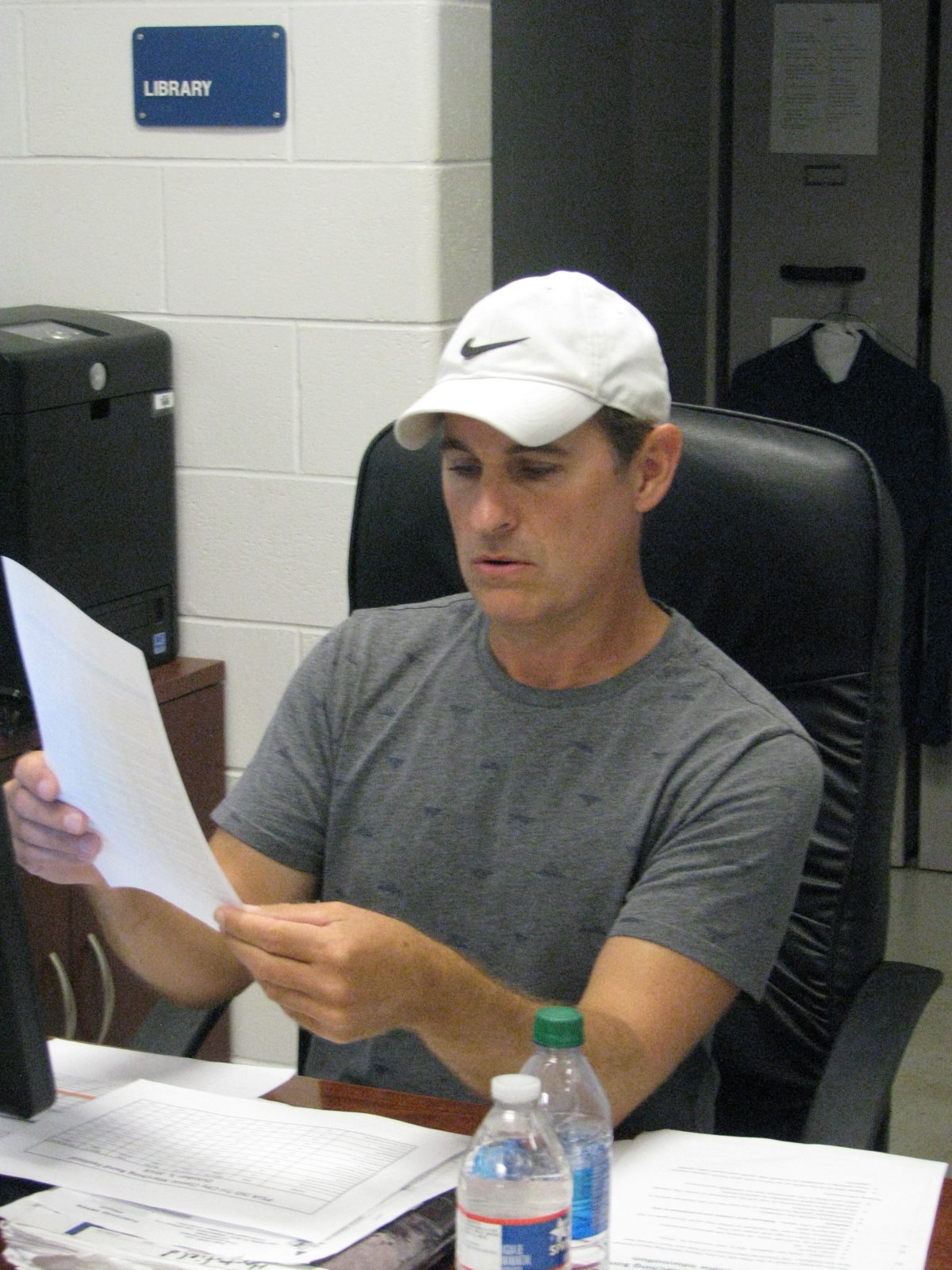 PI-ISD Band Director Scott Hartsfield working in his office, preparing for the Port Isabel High Silver Tarpon Marching Band’s first marching contest of the season. Photo by Larry Gage.