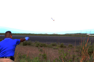 Edgar Cruz throws vaccine packets into the flats near Sea Turtle, Inc. Photo by Gaige Davila.