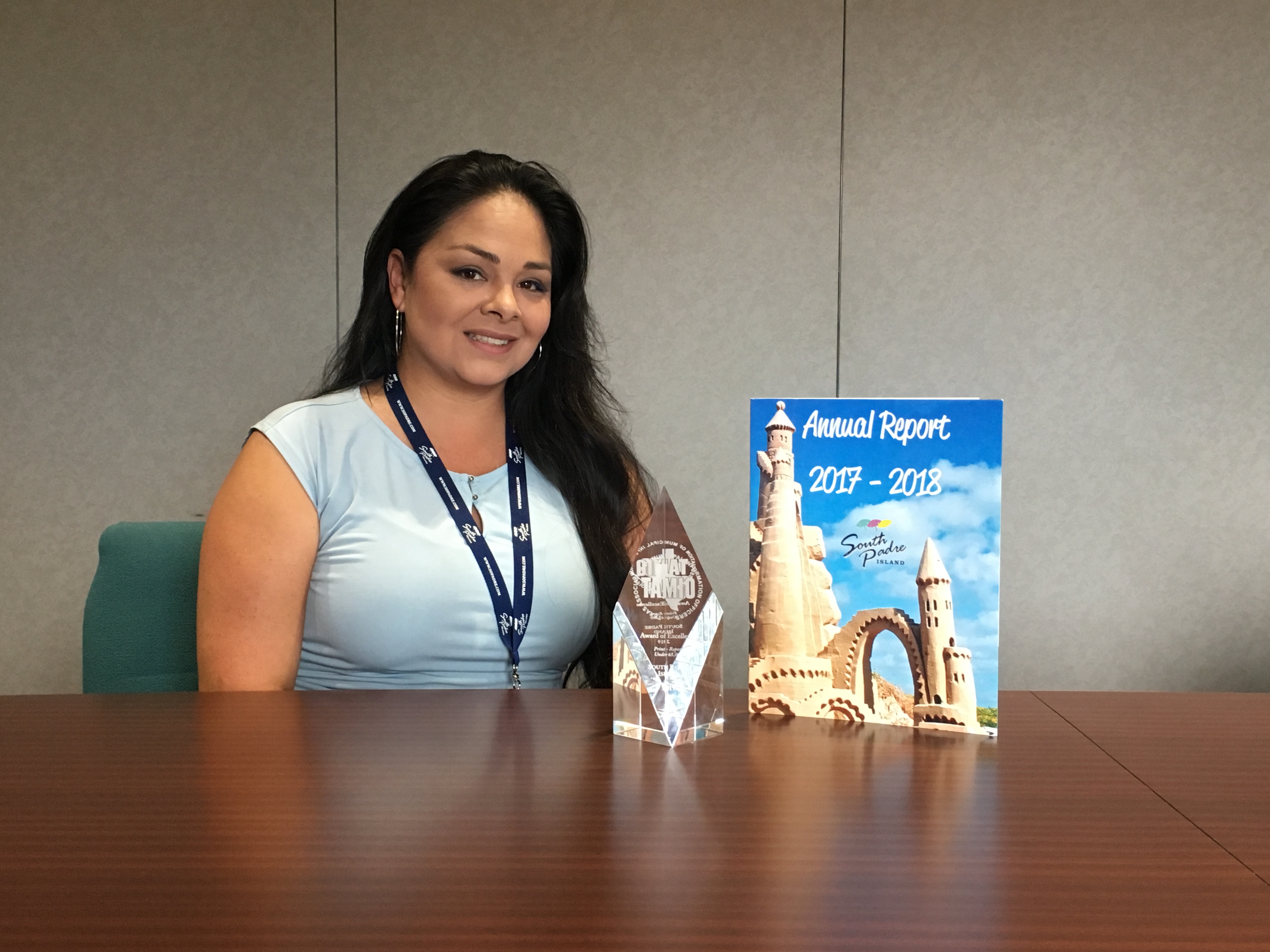 City of South Padre Island’s public information officer Angelique “Nikki” Soto is shown with the TAMIO Award of Excellence. Soto has been appointed to City Secretary starting April 1. File photo.