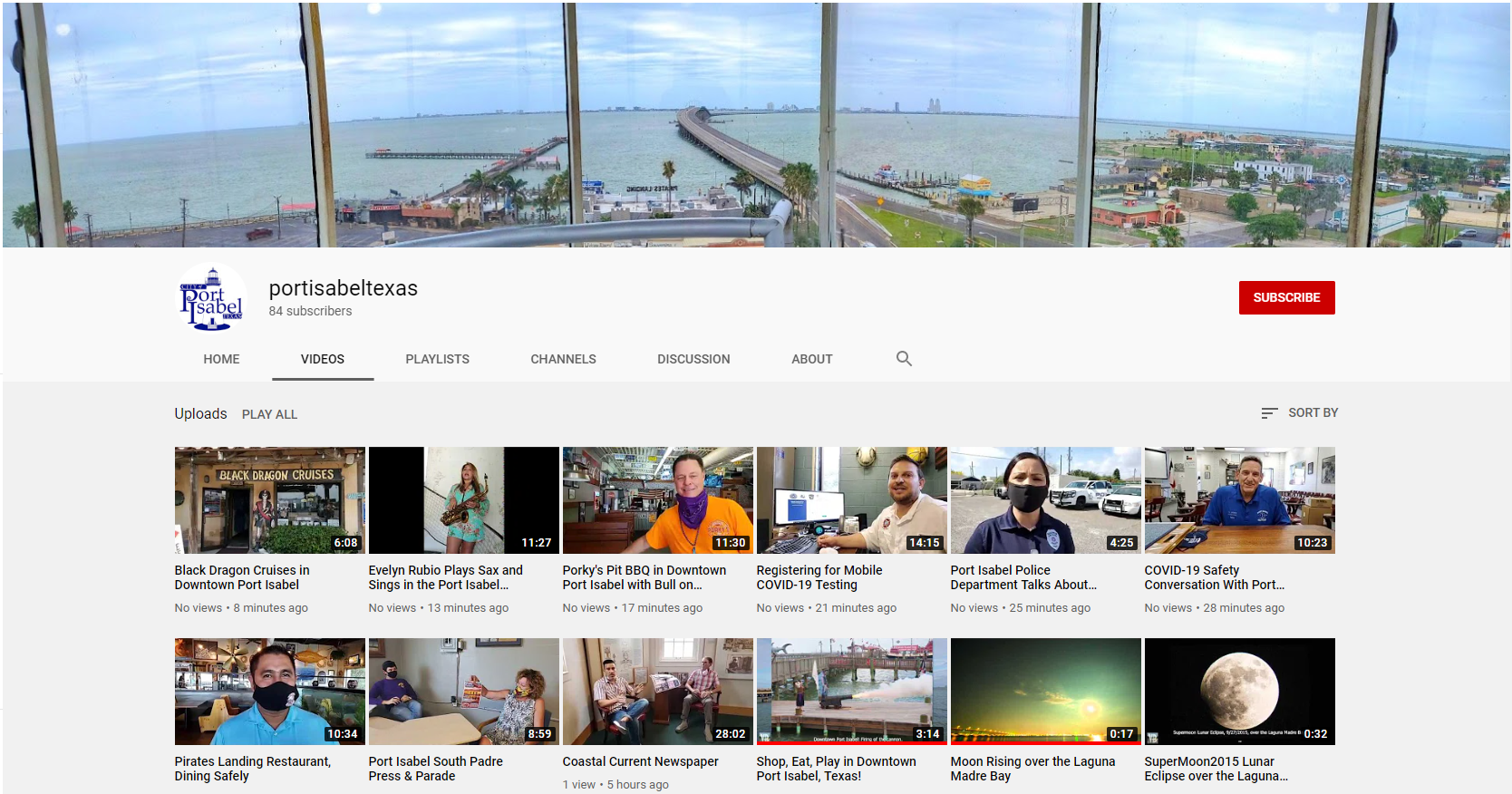 The City of Port Isabel’s YouTube page showing several of the city’s interviews with local businesses.