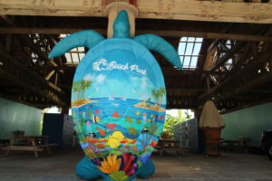 “La Sirena,” a sea turtle sculpture painted by Beth Fedigan, permanently on display at Sea Turtle Inc. Photo by Gaige Davila.