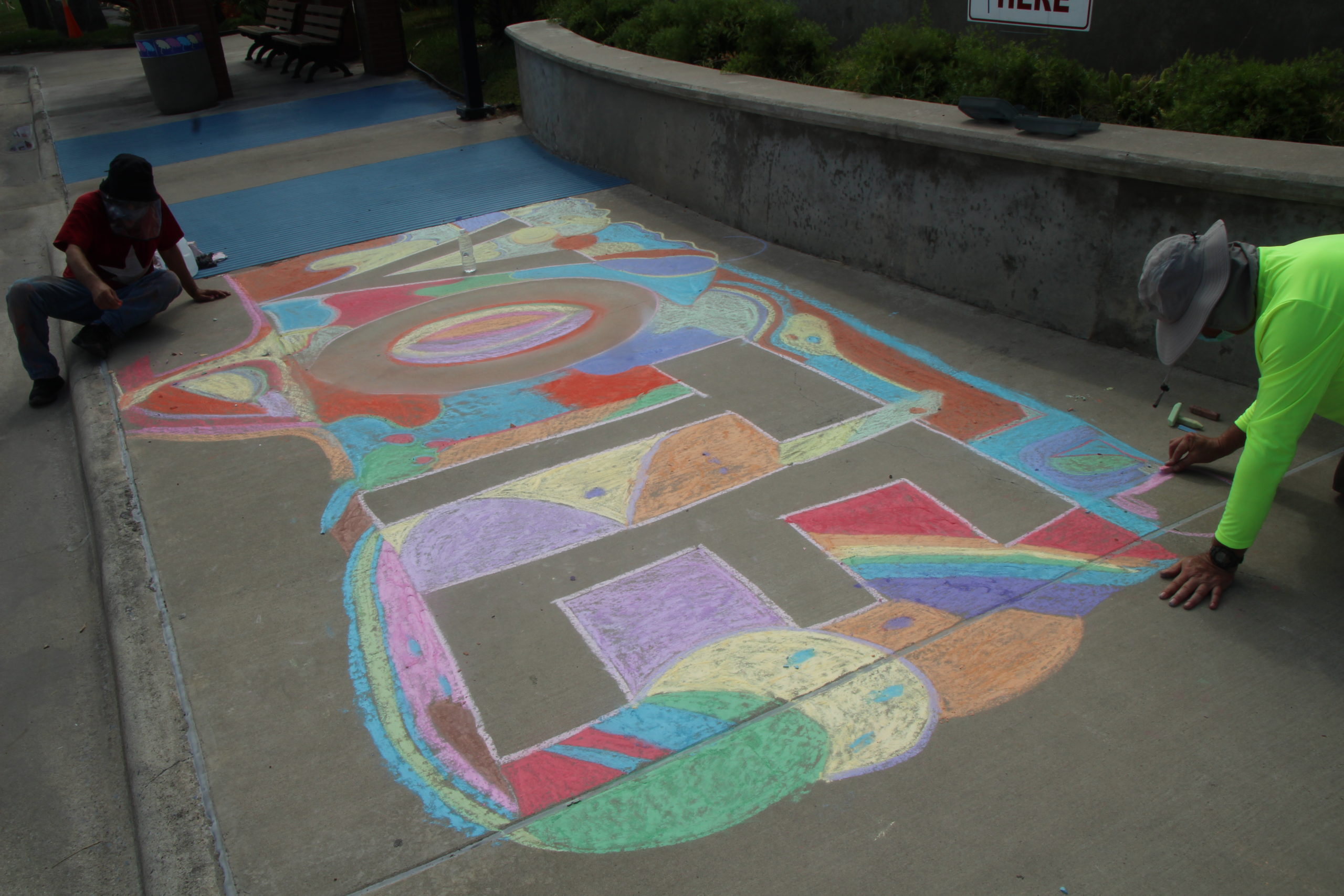 Jose Sanchez (left) and Brian Scott (right) create an impromptu art piece in front of South Padre Island City Hall on Oct. 13. “I want to advocate for the power of public art,” Sanchez said. “We’re just people, we’re just citizens. We’re not saying anything that any citizens wouldn’t be proud to say. Photo by Gaige Davila.