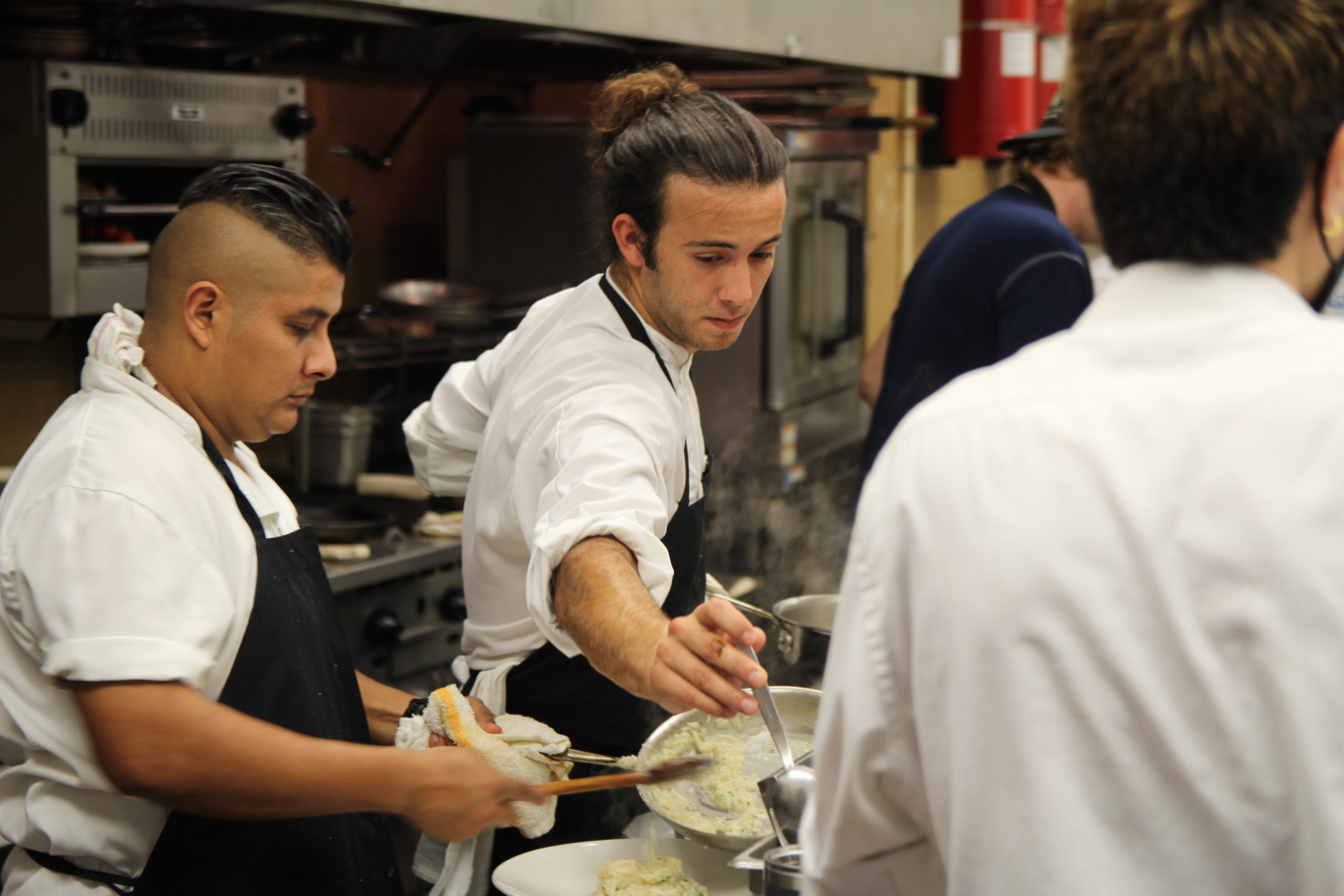 F&B’s menu, which changes seasonally, is sometimes guided by ingredients the restaurant’s distributors have available. A storm in the Gulf of Mexico that disrupts waters for fisherman could mean a last-minute menu change from grouper to halibut. Events like these can become a teaching moment for F&B’s cooking staff, where Greenwood shows them how to filet a 40-50 pound non-local fish like a halibut. From there, those dishes are served to guests who may otherwise never have the chance to enjoy.
