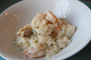 The seafood risotto, a dish Greenwood says will likely never leave the regularly-rotating menu, starts with 500 little neck clams. Specifically, 500 little neck clams boiling in reverse-osmosis purified water, creating a stock that turns sky-blue. That stock is used to cook the rice for the risotto, creating a pronounced—but not overbearing—ocean flavor throughout the crab, clam, scallop and shrimp-adorned dish.