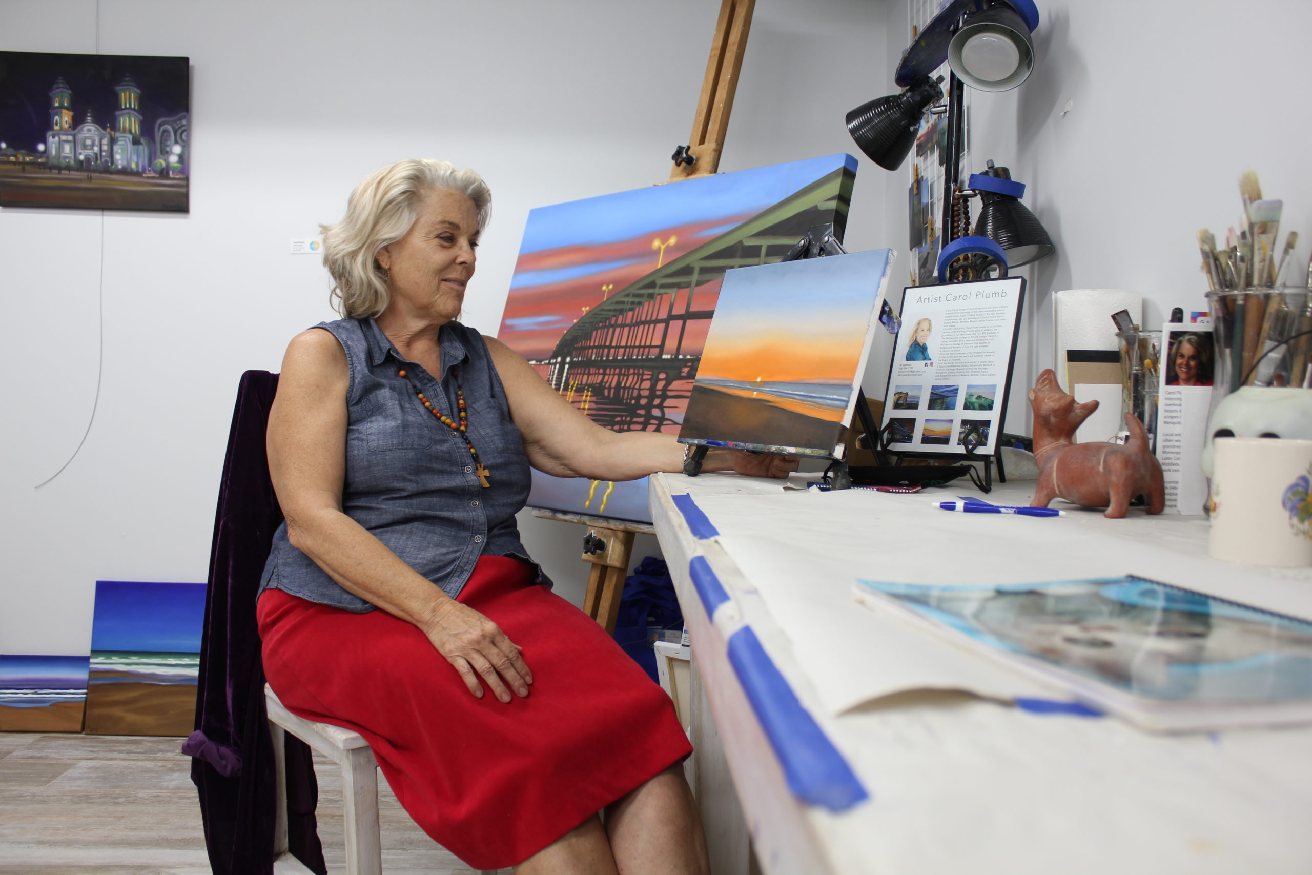 Carol Plumb, ABI-SPI resident artist, shows a color study for a future painting from her workspace. Photo by Gaige Davila.