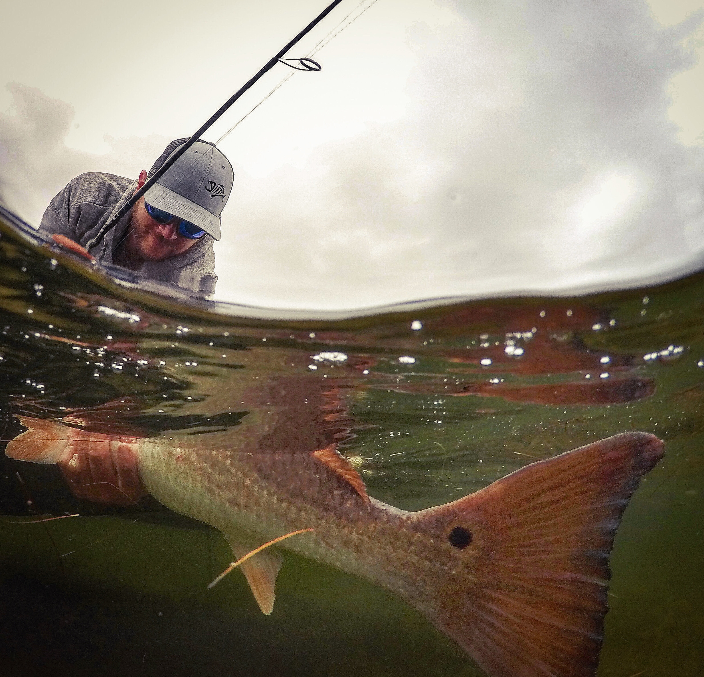 Brian Barrera and a redfish. Photo by Danno Wise.