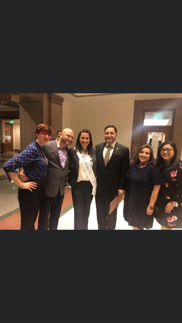 Caroline Davis, James Overpeck, Jennifer Overpeck, Texas Rep. Philip Cortez, Wanda Longoria (president Northside AFT) and Clarissa Rodriguez at the Texas Capitol building. Courtesy photo.