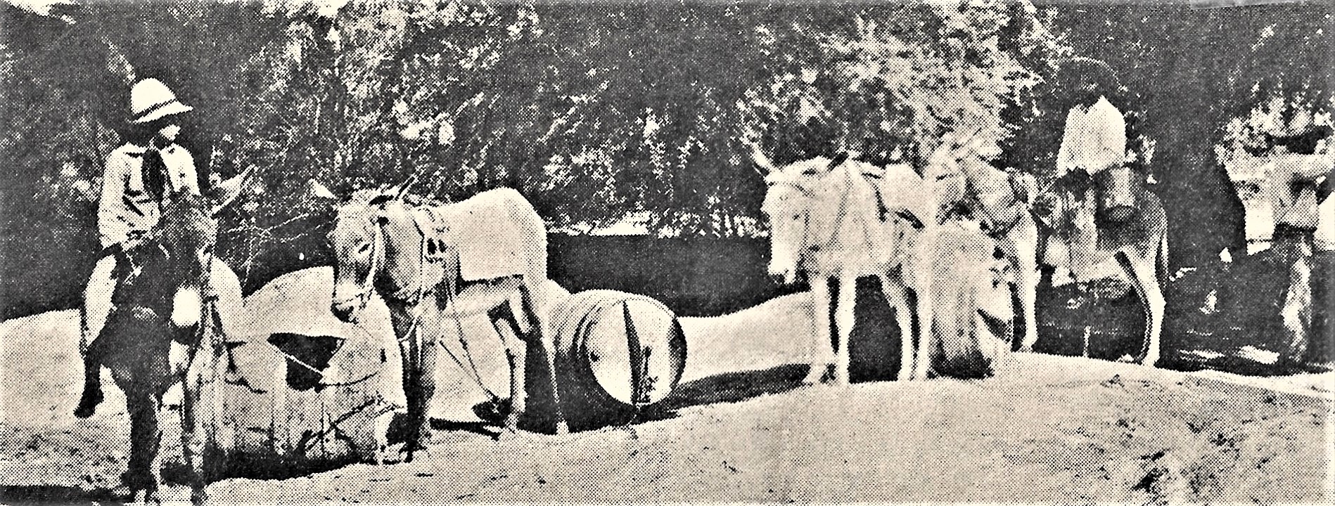 Early on, the entrepreneurs, as you see in the above photos, rode on a burro—it was later that they, too, entered the modern era by using a wagon to navigate through the dirt streets of then.