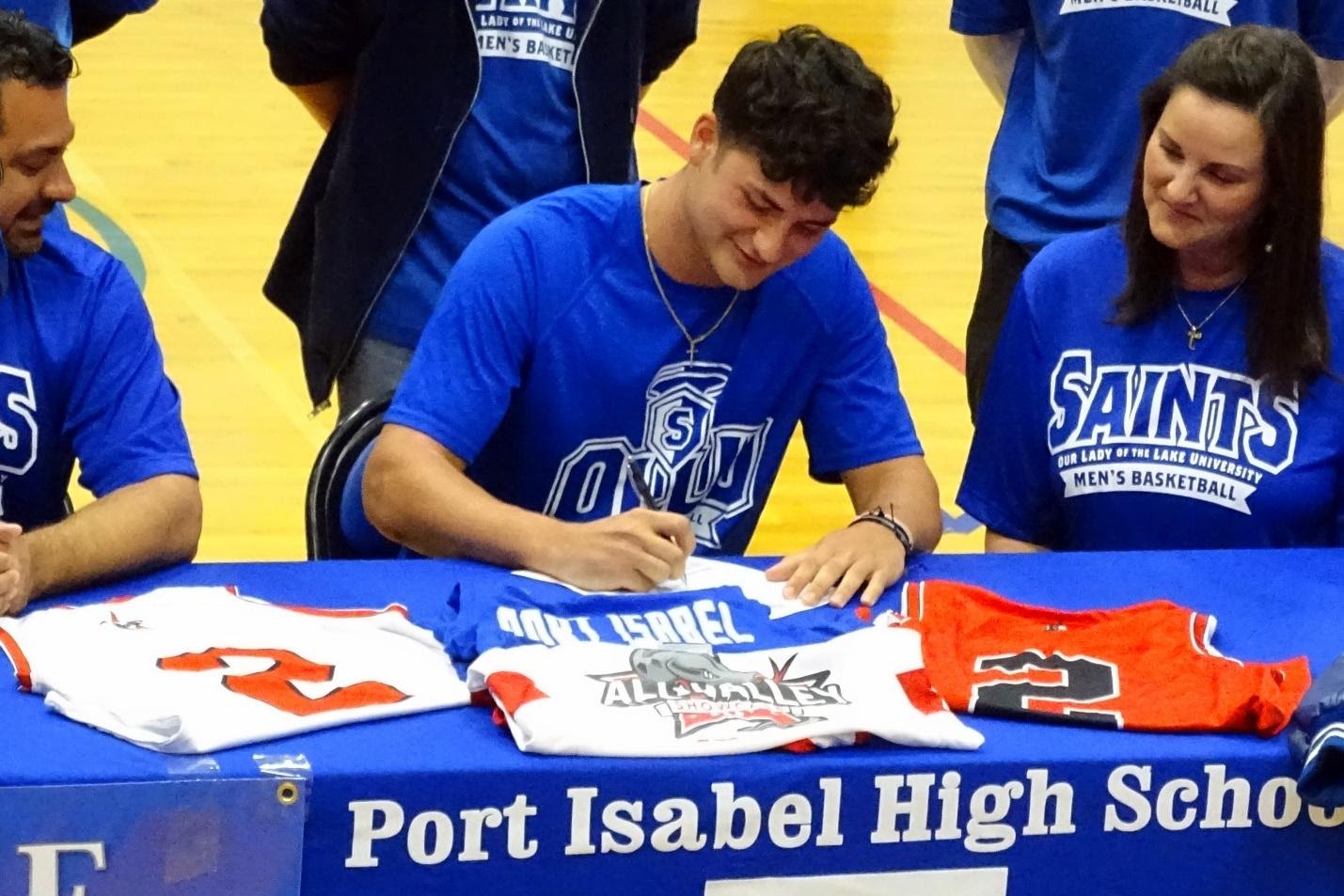 This past Thursday, June 3, Port Isabel High School (PIHS) held a signing day event for basketball player Cole Pinkerton. His hard work and determination were awarded with a scholarship to Our Lady of the Lake University (OLLU) in San Antonio, Texas. The OLLU Saints is a Division 1 university and plays in the Red River Athletic Conference.