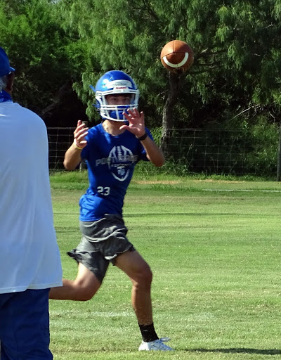 Two-a-days practices are underway for the PIHS Tarpons, starting this past Monday. Seen here is a Tarpon receiving a ball on the first day of practice. Photo by Constancio Martinez Jr.