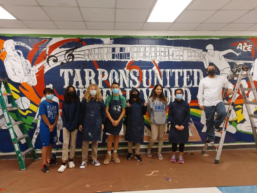 According to Mr. Rodriguez, the idea behind the mural is to incorporate all the activities students can participate in at the junior high, including different sports and the arts, as well as local landmarks like the Causeway and Space X. He says the students like working on the project. According to Mr. Rodriguez, it is fun for the middle school students because it gives them a chance to do something they haven’t done before: paint a mural.