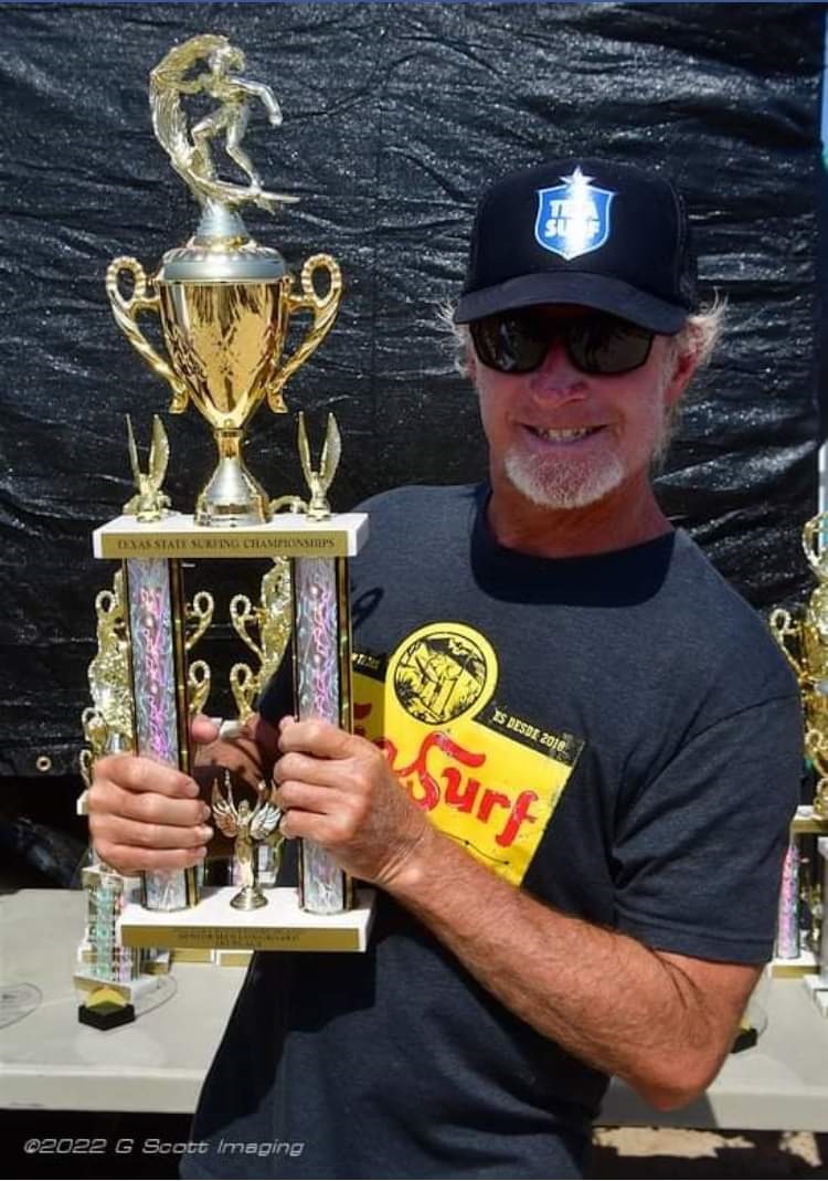 A member of the local South Padre Island surfing community, Gaines Burns, succeeded in securing first place at the Texas State Surfing Championship, held April 23 – 24 at the Island’s own Isla Blanca Park, in the Senior Longboard division, a goal he had been working towards for many years.