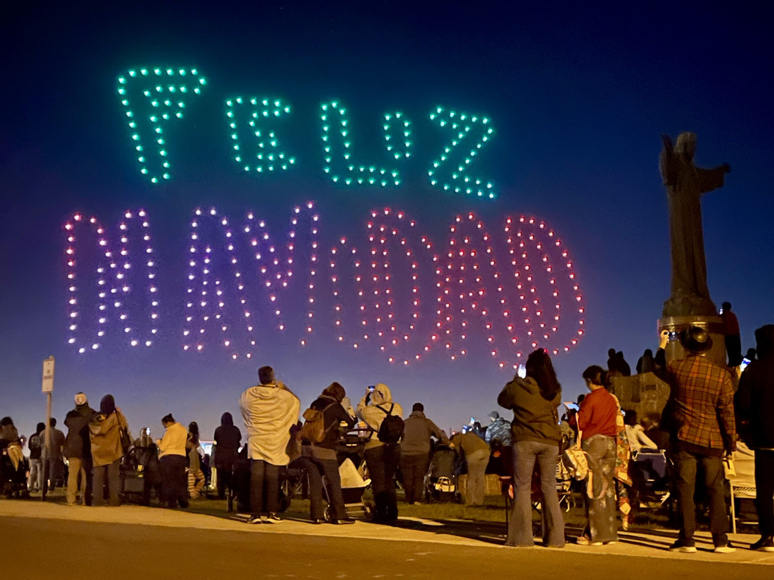 The event, presented by SpaceX, area businesses and Cameron County, featured two free light shows. The first drone show commenced after 6 p.m., captivating the audience with holiday animations brought to life through synchronized drone movements. The second show, scheduled for 8:30 p.m., presented an “interstellar twist,” enhancing the experience with an imaginative and cosmic touch.