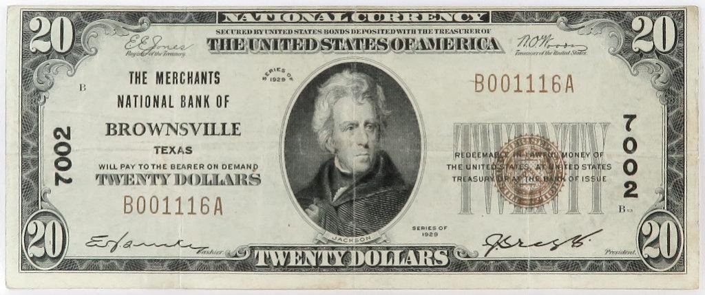 Editor’s Note: The Merchants National Bank Of Brownsville in Texas printed $2,724,310 dollars worth of national currency. This national bank opened in 1903 and stopped printing money in 1932.