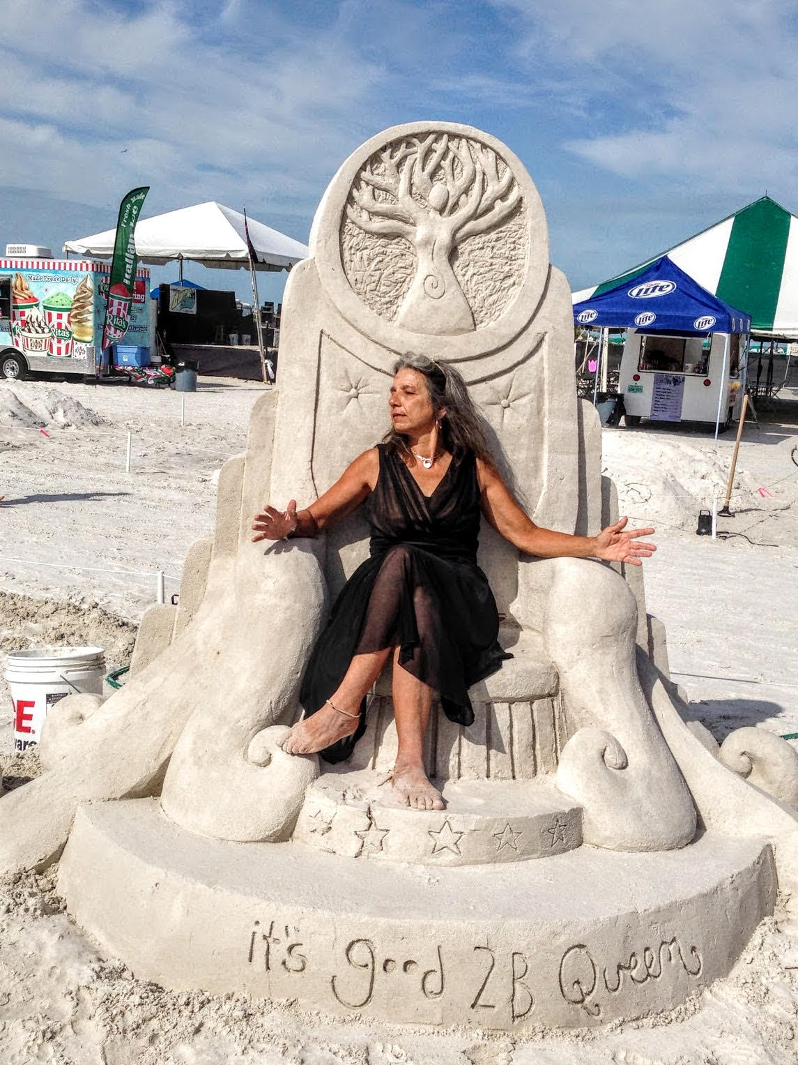 The beach itself exerts influence over every creation. “The main concern is to be close to the water source – we need a LOT of water to do what we do. Wind can dry things out fast. I am fond of saying that a sand sculpture’s temporary nature is part of its charm. You enjoy a sand sculpture the way you enjoy a rose,” she said. That impermanence, far from discouraging, fuels her creativity.