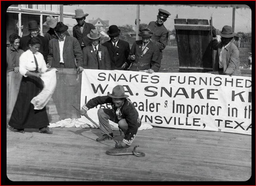 Editor’s Note: W.A. King moved to Brownsville at the turn of the century after working with snake exhibits in circuses and fairs. While working with snakes, he discovered that these exhibitors had a real need for some type of wild animal supplier. Since he needed a tropical climate to raise reptiles and wild animals, King settled in Brownsville, where he developed Snakeville to collect and raise wild animals and earned the name ‘The Snake King of Brownsville.’ In later years, The Snake King began training his animals, and his son, Manuel, gained notoriety as the World’s Youngest Wild Animal Trainer.
