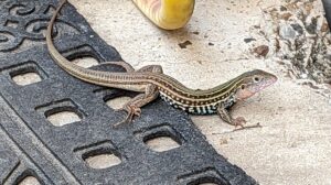 By KATHY RAINES The long-tailed, striped lizard, its limbs splayed out like a gecko’s, suddenly materialized on the porch as I swiveled back from watering the birds. Snapping photos, I crept towards its tail end as the whiptail weighed its options: whether to bolt under an inch-wide crevice between porch and brick or keep …