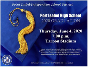 By Gaige Davila & David Lopez editor@portisabelsouthpadre.com editor@sbnewspaper.com After a seemingly-endless period of will-it-or-won’t-it happen, Port Isabel High School’s Class of 2020 will graduate in an in-person ceremony. The graduation will be held at Tarpon Stadium on June 4 at 7:00 p.m. Details on how Point Isabel Independent School District (PI-ISD) will conduct the graduation …