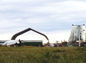 Special to the PRESS Strong winds knocked over the nosecone section, shown above left, of the SpaceX Starship Hopper test vehicle at the company’s Boca Chica launch site. The stainless steel vehicle, which was constructed in late December, came loose from its moorings as a cold front moved through the region in the overnight hours …