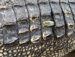 Alligator found with arrow in its back